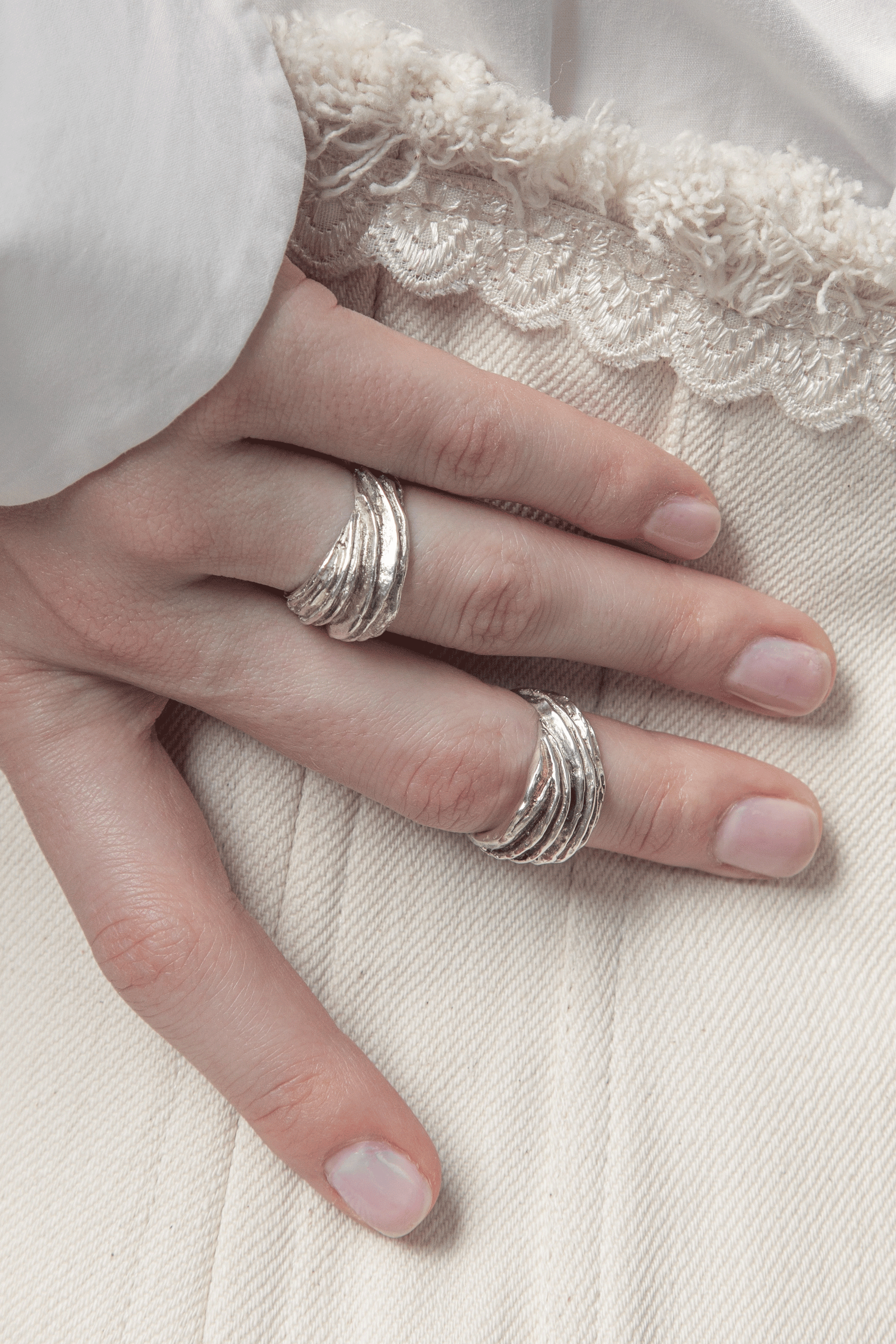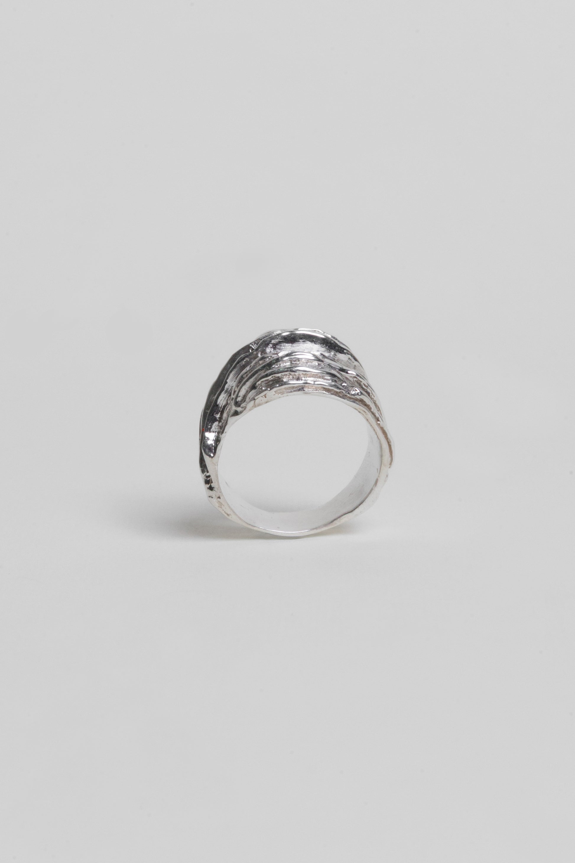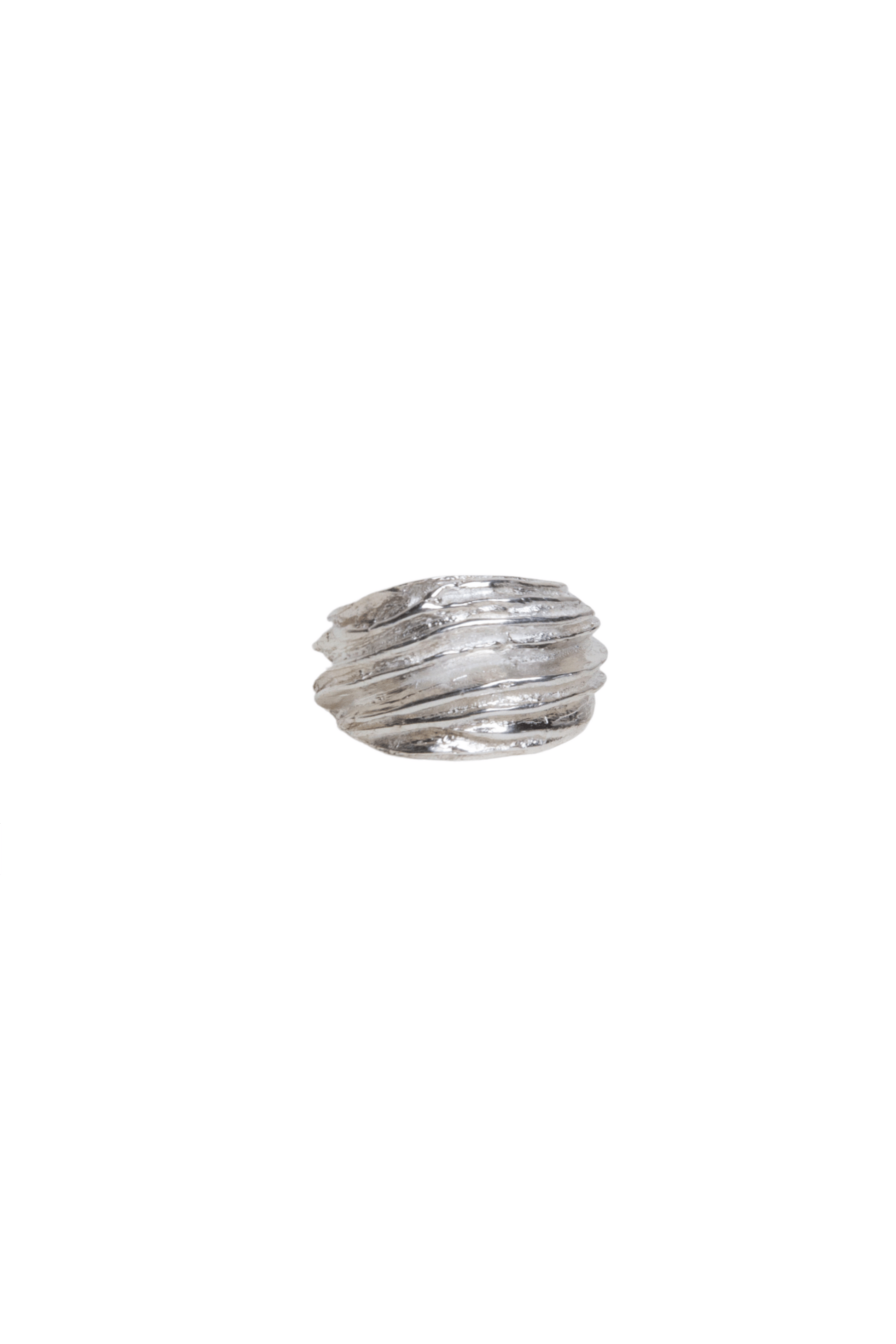 - Anillo hecho en plata ley 950 con textura inspirada en la mantequilla batida.