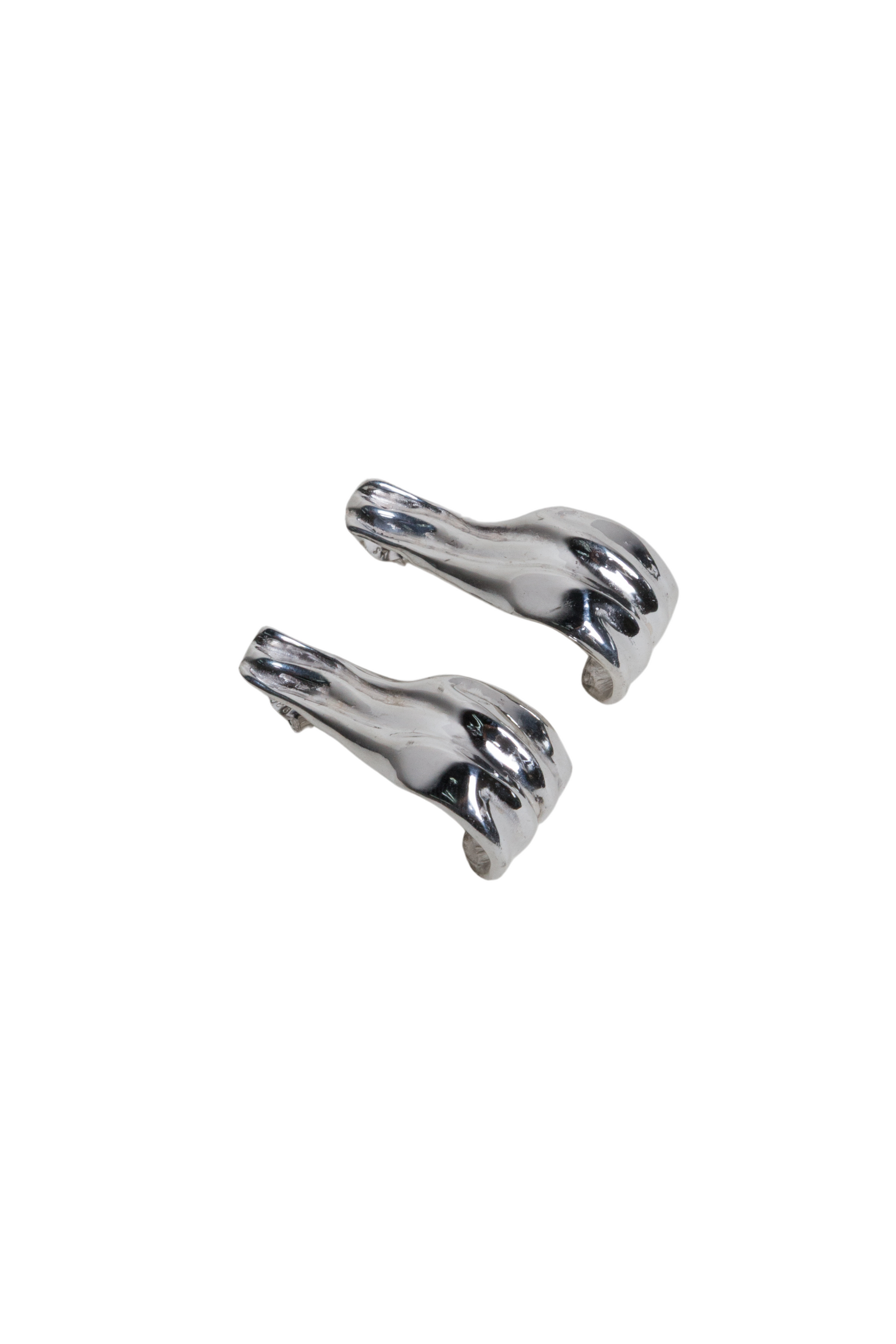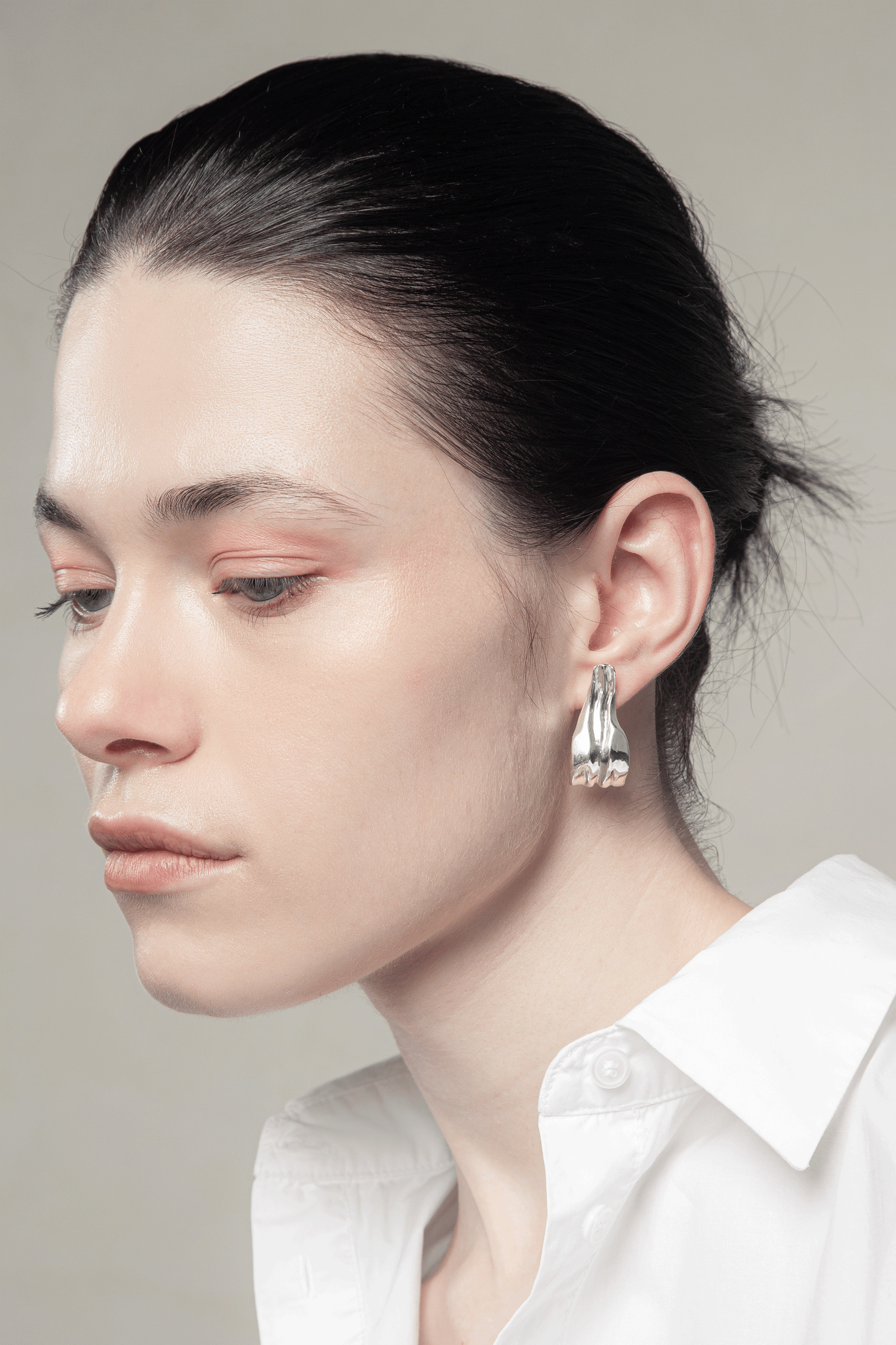 - Aretes hechos en plata ley 950 con textura corrugada, más delgados en la parte de arriba y a medida que van cayendo se van engrosando.