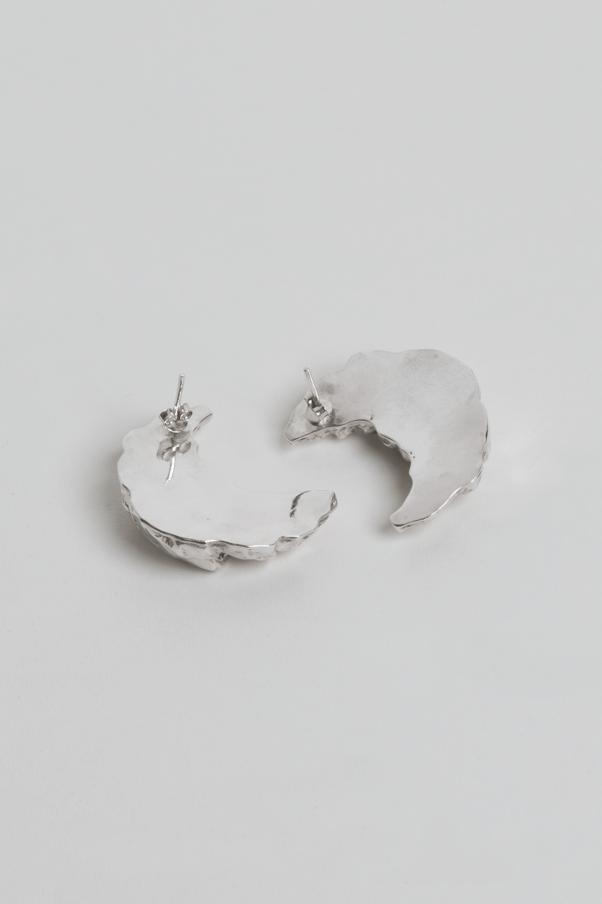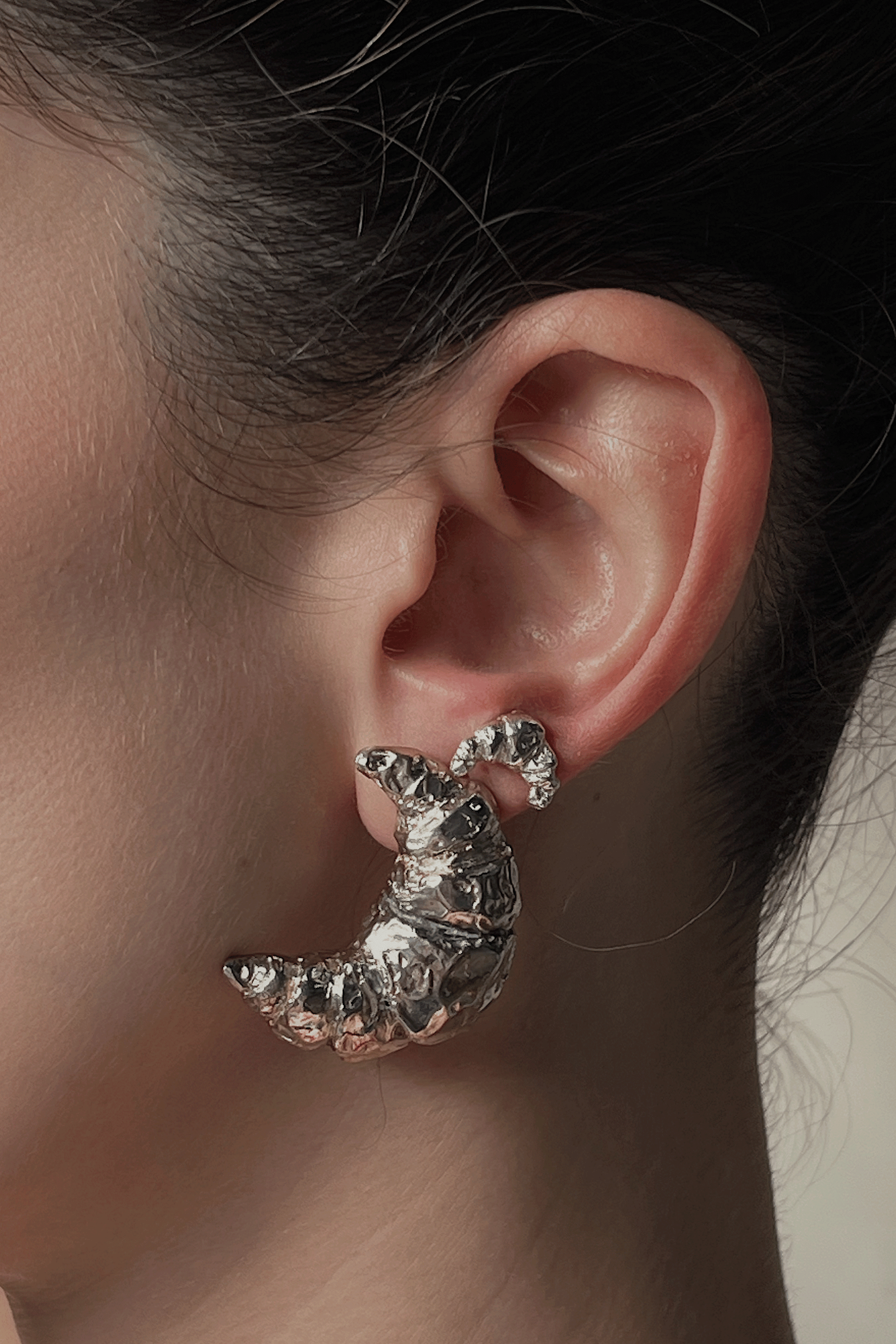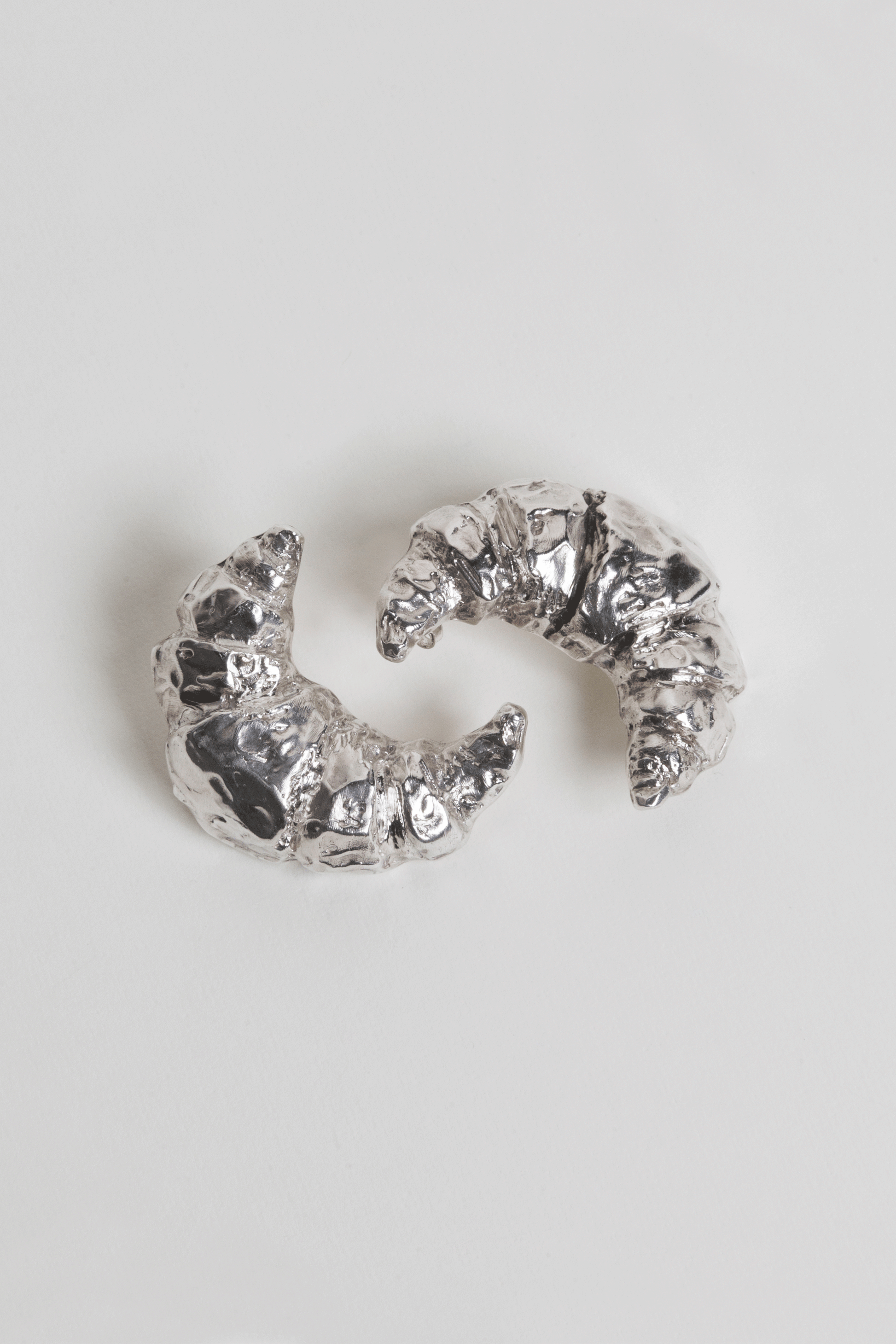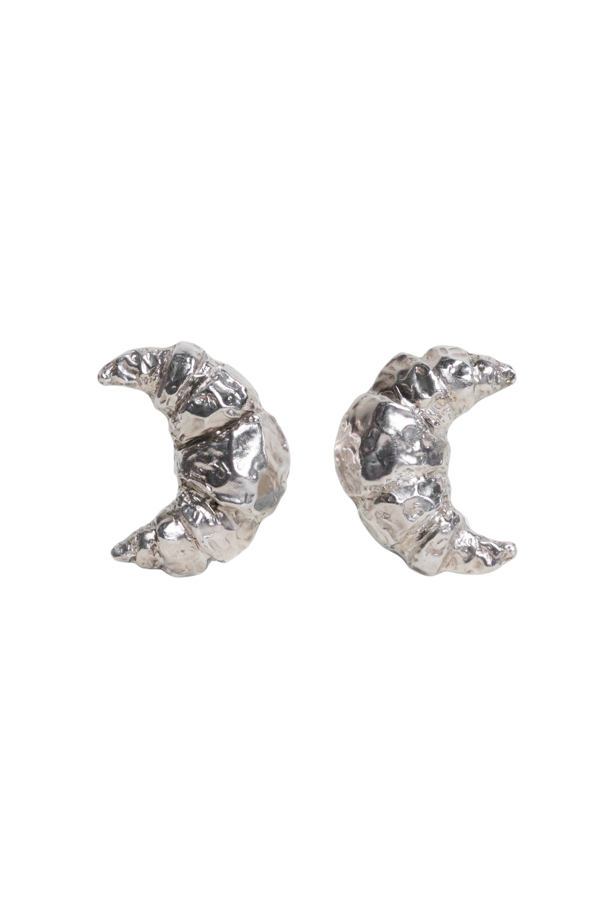 - Aretes con forma de croissant hechos en plata ley 950.