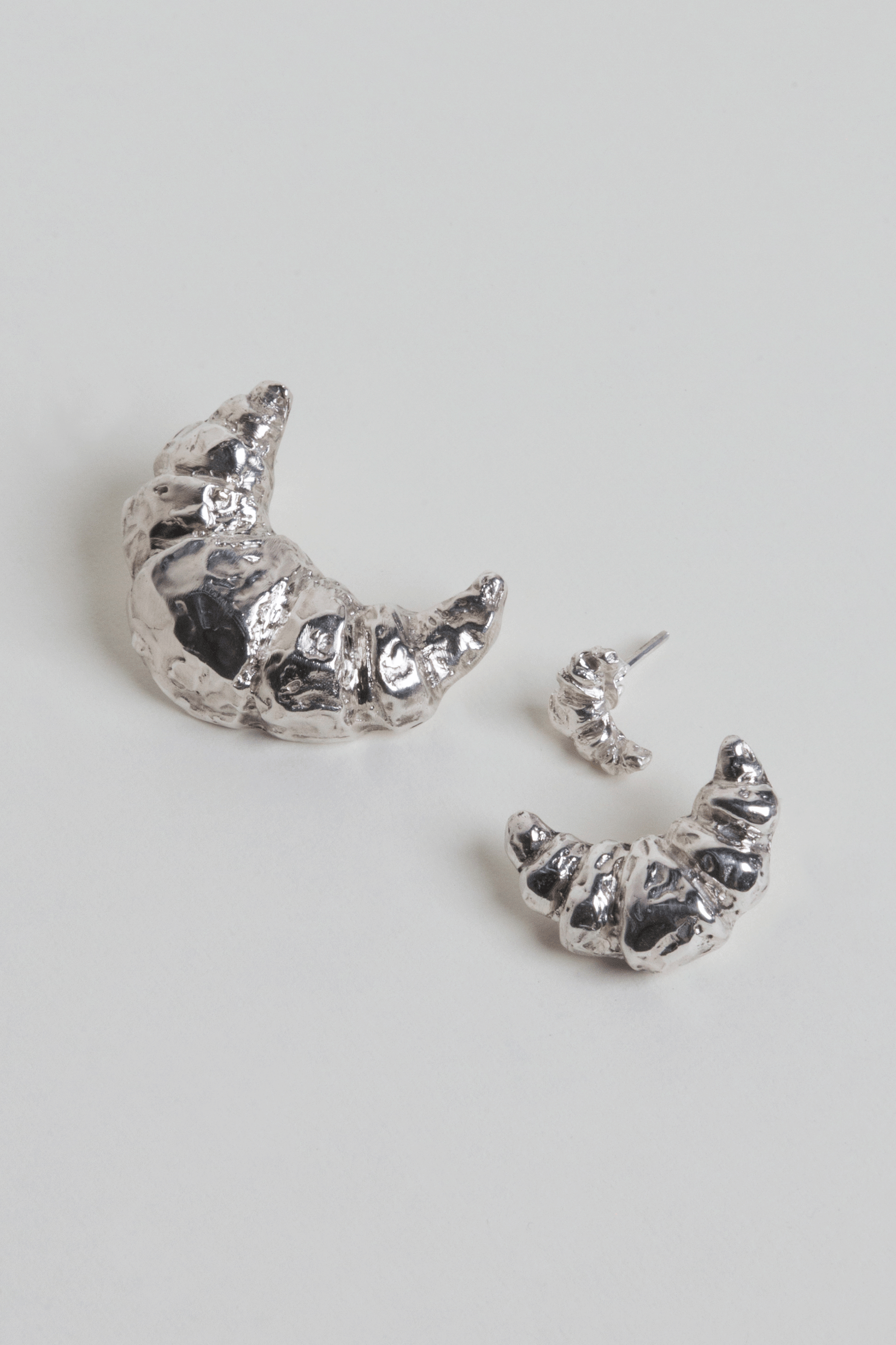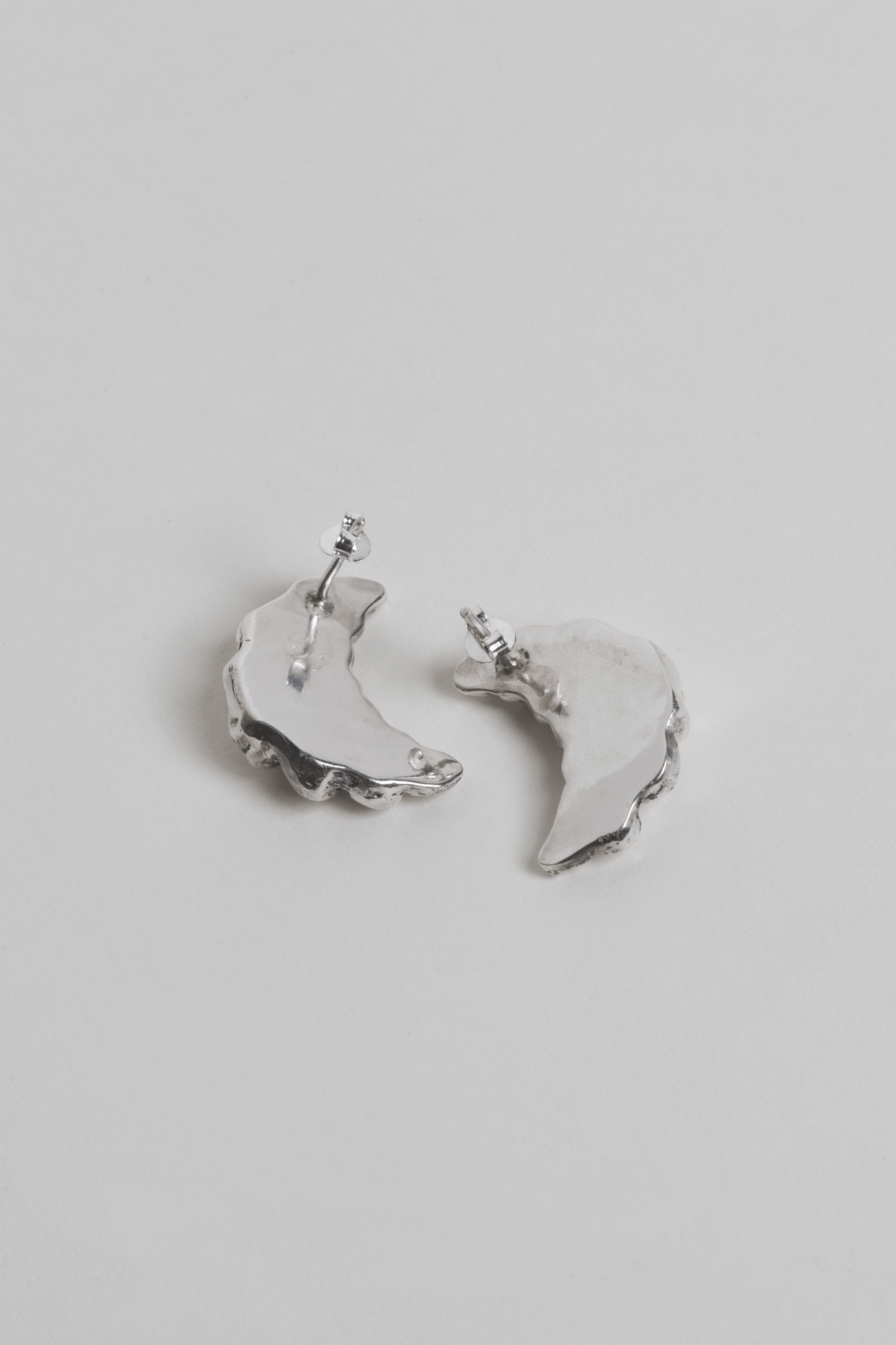 - Aretes hechos en plata ley 950 en forma de croissant.