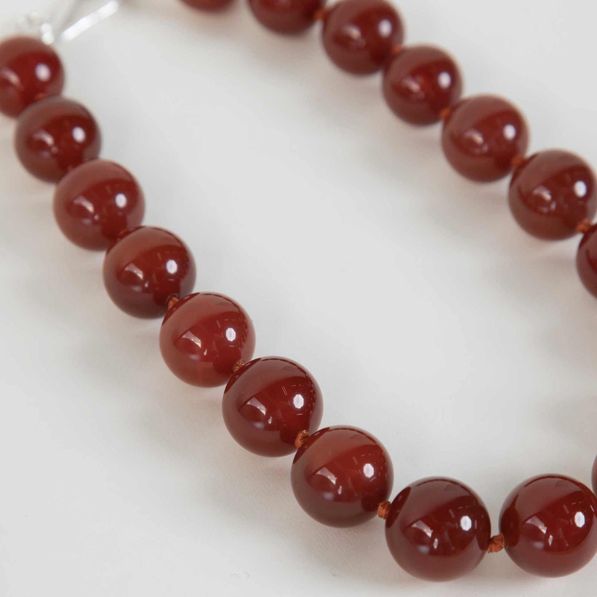 - Collar anudado con hilo rojizo y cornalinas.