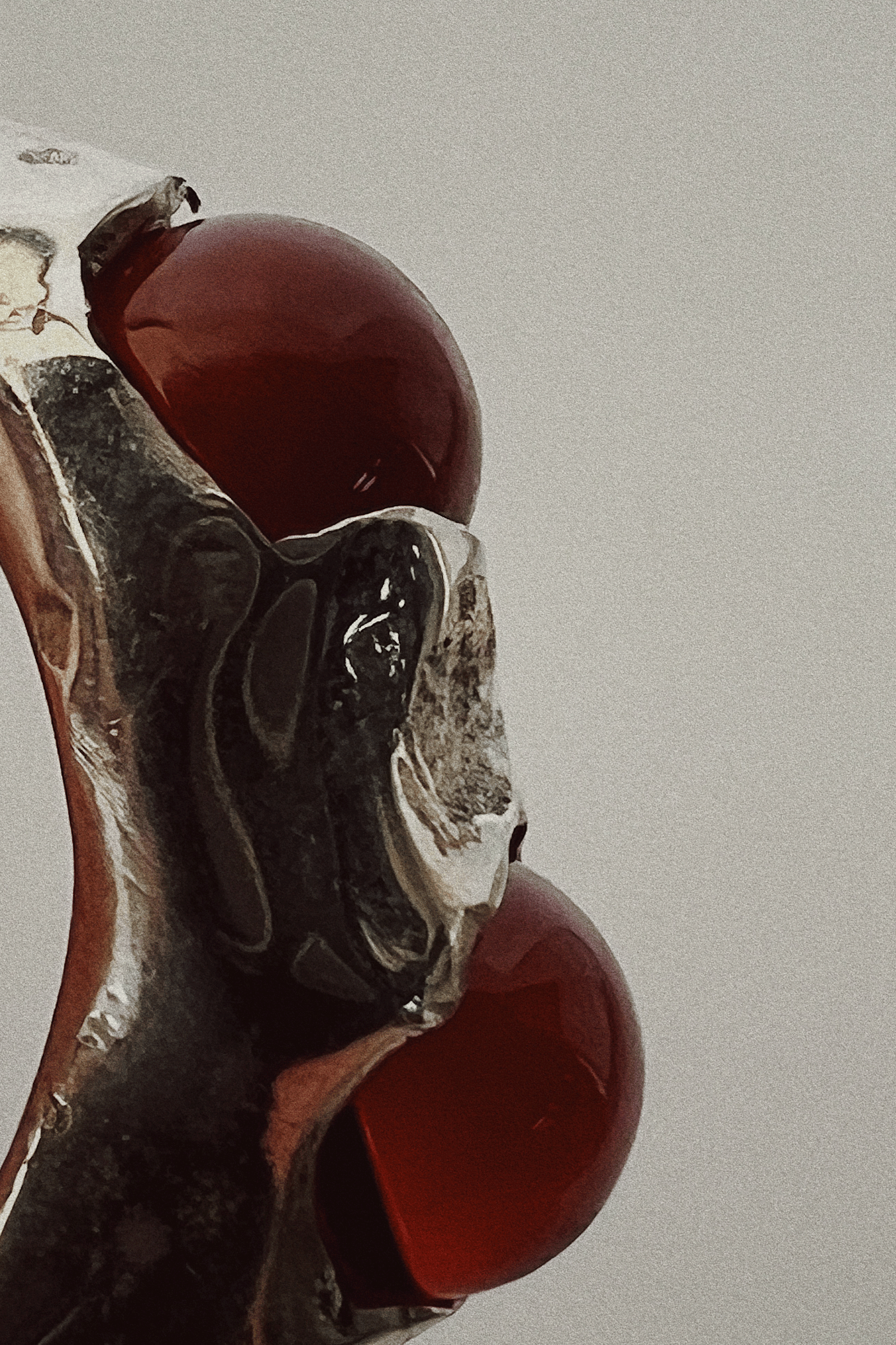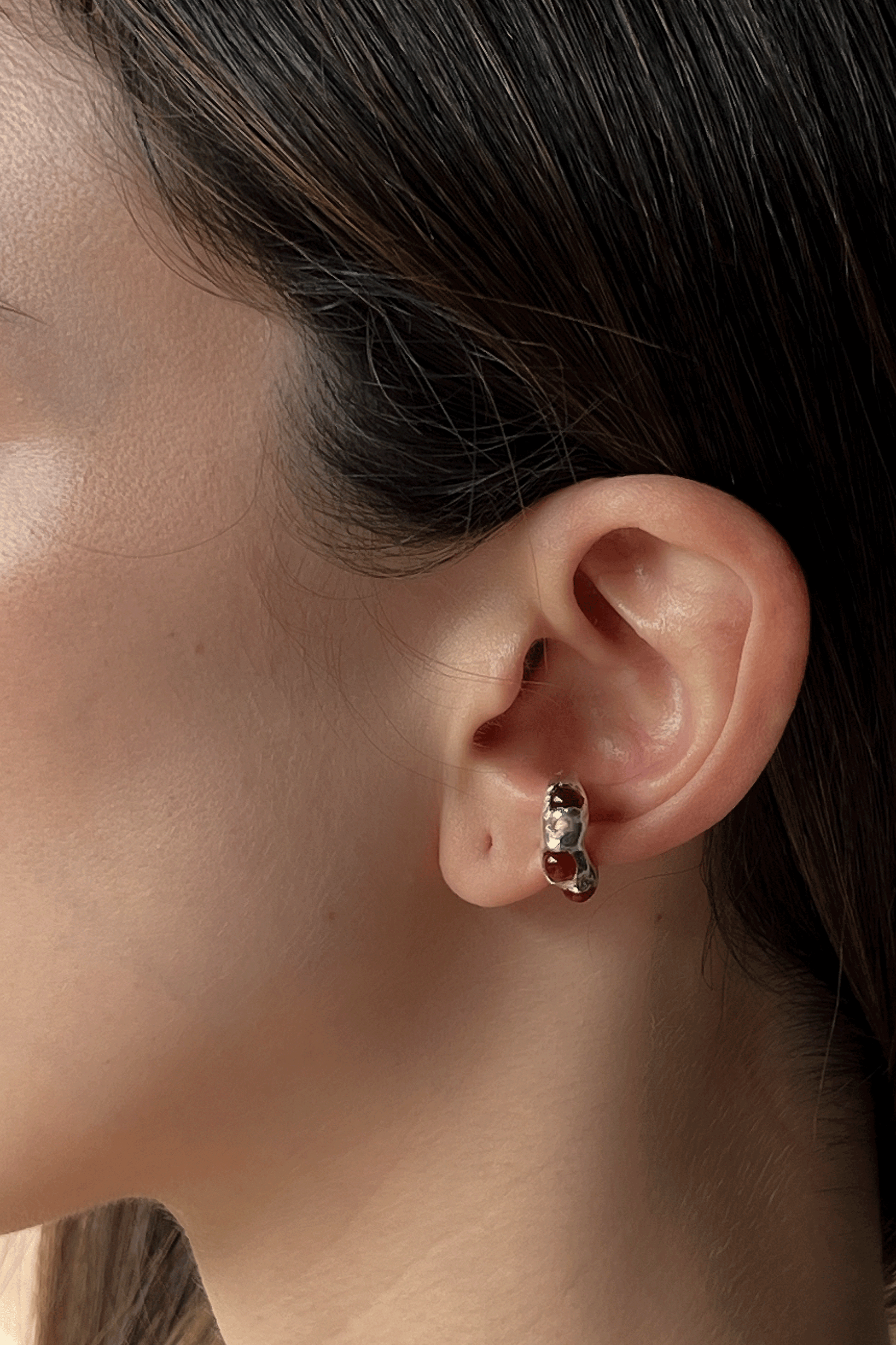 - Earcuff liso hecho en plata ley 950 con tres cornalinas engastadas.