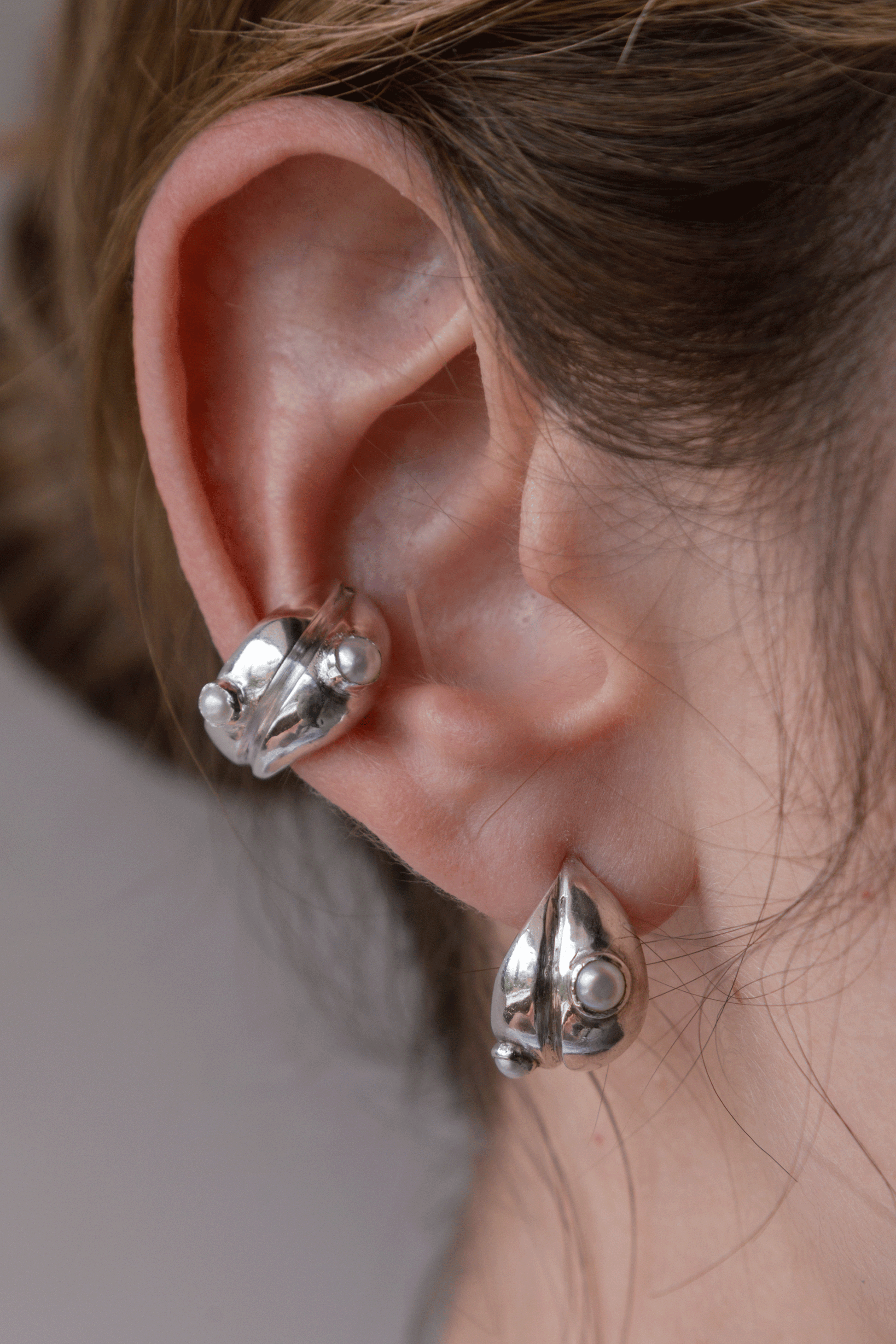 - Earcuff liso con una división en la mitad hecho en plata ley 950.