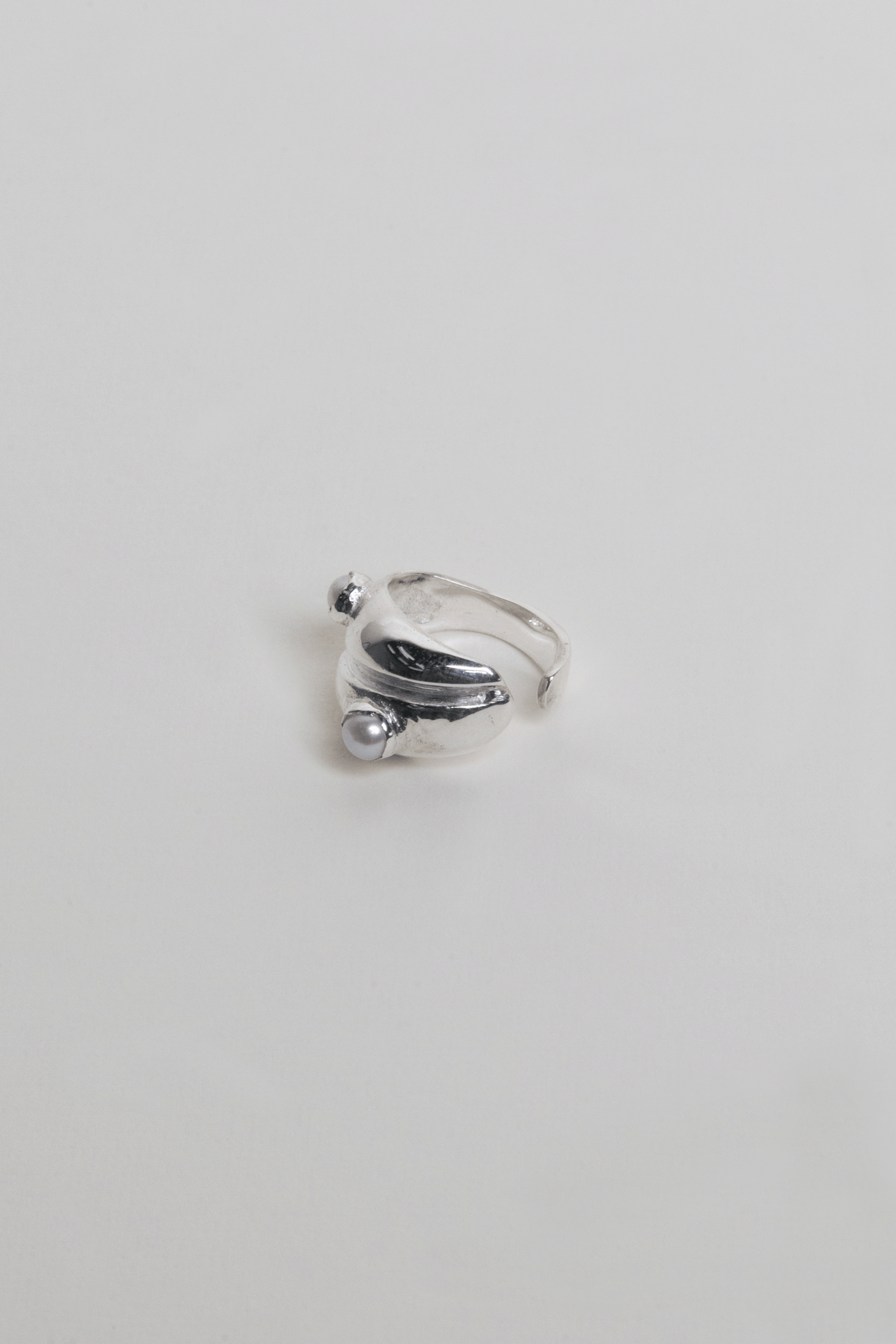 - Con dos perlas naturales de diferentes tamaños engastadas.
